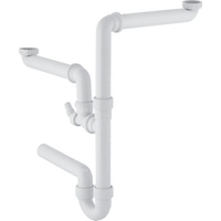 Syfon rurowy Geberit do dwóch odsadzkowych zlewozmywaków, z łącznikiem kątowym wężyka, wylot poziomy: d=50mm, G=1 1/2″, Biały-alpin