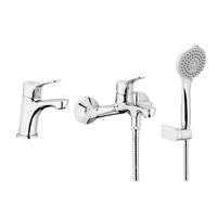 MORRIS ZESTAW 3 W 1, BATERIA UMYWALKOWA + WANNOWA Z NATRYSKIEM PUNKTOWYM KOMPLETNYM, CHROM