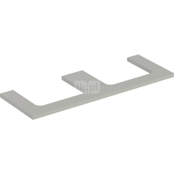 Blat pod umywalkę Geberit ONE z wycięciem, do prostokątnej umywalki nablatowej: B=133.8cm, Piaskowy szary, Przekrój=Lewa i prawa strona, Lakierowany na wysoki połysk