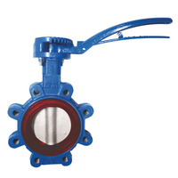 Przepustnica z otworami gwintowanymi SYLAX z napędem ręcznym dźwigniowym, dysk: AISI316, wykładzina: NBR, korpus: GGG40 epoksyd., Pnom 1,6 MPa, tmax=85 st.C DN65