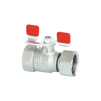 Zawór kulowy HERZ 2442 mosiądz niklowany, PN16 DN 15 GW x GZ z nakrętką, uchwyt: dźwignia