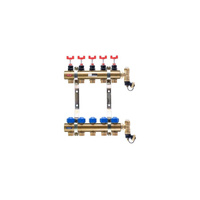 Rozdzielacz do ogrzewania podłogowego QIK BASIC TN 5-obieg. mosiądz GW 1'' x GZ 3/4'' + przepływomierz