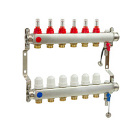PHA-127/1/S 7-obwodowy PN6 Rozdzielacz ze stali nierdzewnej z odpowietrznikiem ręcznym do ogrzewania podłogowego