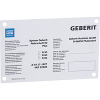 Tabliczka informacyjna Geberit dotycząca Rohrschott90 Plus