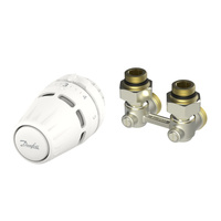 Zestaw termostatyczny prosty składający się z cieczowej głowicy Regus™ M30 oraz zaworu RLV-KB do grzejników dolnozasilanych.