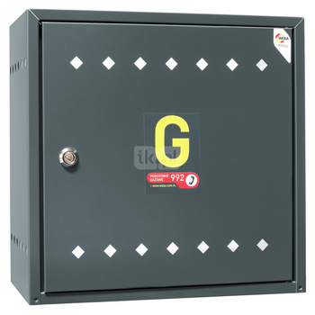 Punkt redukcyjno-pomiarowy na 3-4 gazomierzy G4/G6, w pionie, w skrzynce metalowej - popielaty