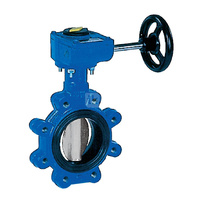 Przepustnica bezkołnierzowa SYLAX z przekładnią ślimakową, dysk: AISI316, wykładzina: EPDM, korpus: GGG40 epoksyd., Pnom 2,5 MPa, tmax=90 st.C DN100