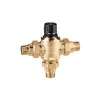 Regulowany termostatyczny zawór mieszający z zaworami zwrotnymi, filtrami na wlotach i złączkami zaciskowymi O 15 30-65 st. C