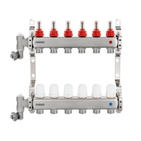 Rozdzielacz stalowy F-Comfort z zaworami termostatycznymi, przepływomierzami, ręcznym odpowietrznikiem i zaworem spustowym, 6-drogowy