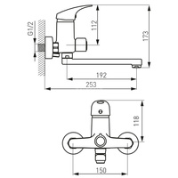 Bateria umywalkowo-wannowa ścienna FERRO TIGA, kolor chrom