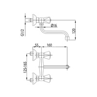 Bateria umywalkowa ścienna KFA Armatura STANDARD, chrom 510, montaż natynkowa