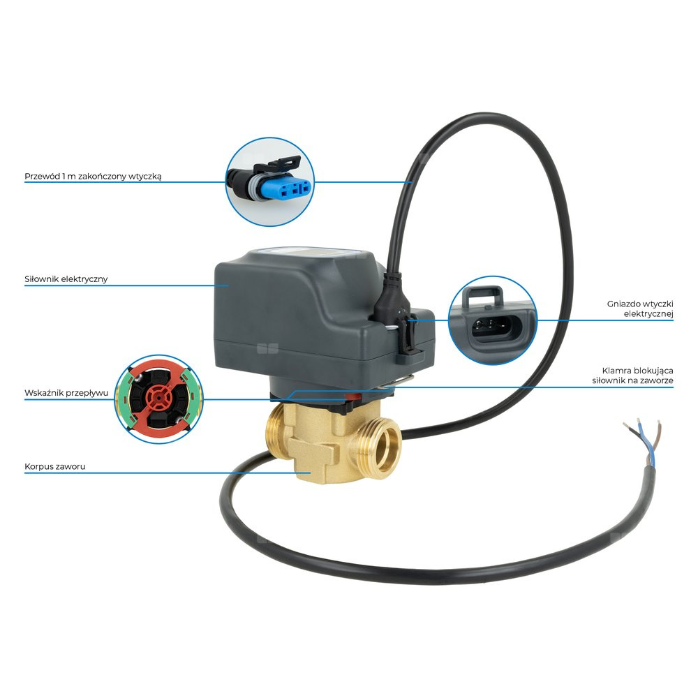 - W połączeniu ze sterownikiem lub termostatem automatyzuje pracę instalacji.