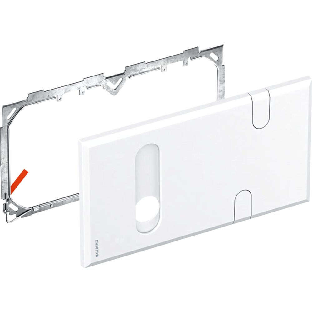 Płytka przykrywająca do baterii umywalkowych Geberit z podtynkową skrzynką funkcyjną i ściennym zestawem odpływowym