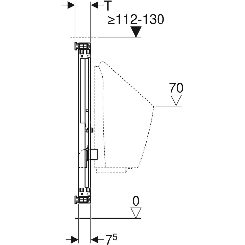 Zastosowanie: Do zabudowy ciężkiej Do montażu w ściankach instalacyjnych o częściowej wysokości lub wysokości pomieszczenia Do montażu pisuarów ze zintegrowanym sterowaniem Do montażu pisuarów bezwodnych Do pisuarów Geberit Preda Do pisuarów Geberit Selva Do pisuarów Geberit Tamina Do natynkowych zaworów spłukujących Charakterystyka: Ocynkowana rama elementu montażowego Rama montażowa z czterema kątownikami montażowymi Możliwość regulacji głębokości zabudowy elementu montażowego w zakresie od 8–12,5 cm Głębokość zabudowy przy montażu bez kątowników 7,5 cm Możliwość dopasowania wysokości elementu do pisuaru, 109–127 cm Wstępne ustawienie do podłączenia pisuaru Geberit Preda Przyłącze wody typu MasterFix i MeplaFix Kolanko przyłączeniowe montowane bez użycia narzędzi Mocowanie wpustu Rp 1/2" o regulowanej wysokości i szerokości (na środku i 5–10 cm z lewej lub prawej strony) Mocowanie kolana odpływowego o regulowanej wysokości i izolowane akustycznie Mocowania pisuarów M8, o regulowanej szerokości i wysokości Trawersy z oznaczonym środkiem, o regulowanym położeniu bez użycia narzędzi Znaczniki na trawersach ustawień do podłączenia pisuarów Geberit Preda i Selva Samoprzylepna podkładka uszczelniająca, pokryta włókniną Zaślepka ochronna do jednokrotnej próby ciśnieniowej z użyciem wody zimnej do maks. 15 bar / 1500 kPa Zakres dostawy: Przyłącze wody R 1/2" Podkładka uszczelniająca Syfon pisuarowy ø 50 mm, z uszczelką do pisuaru Kolano przyłączeniowe z PE-HD, ø 50 / 63 mm Uszczelka ø 57 / 50 mm 2 zaślepki ochronne 2 pręty gwintowane M8 Elementy mocujące