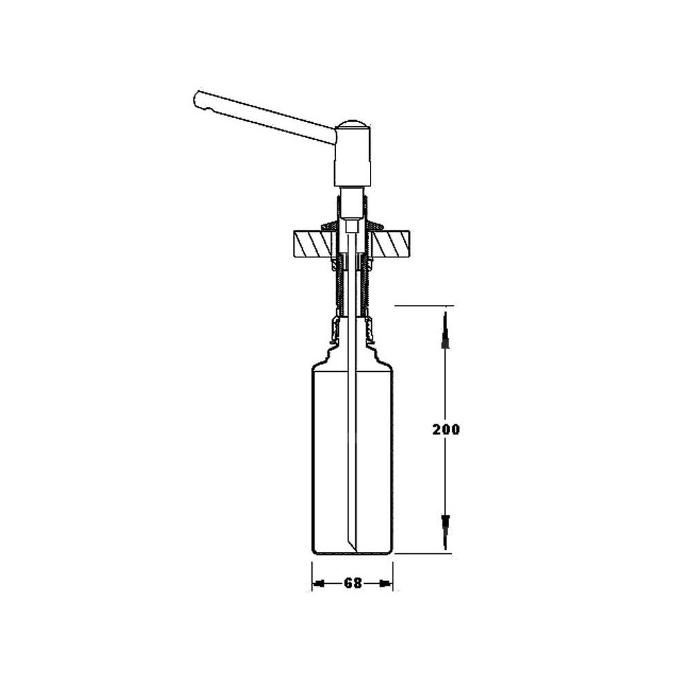 Dozownik do płynów mocowany w blacie, zlewozmywaku lub umywalce, Element dozujący mosiądz STAL SZCZOTKOW.
