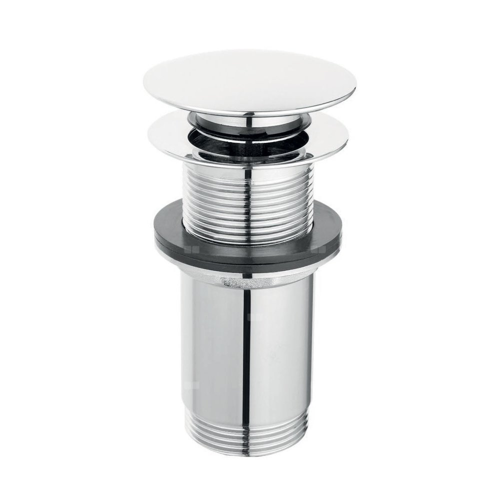 Wysoki, chromowany korek przeznaczony do umywalek blatowych, bez przelewu.