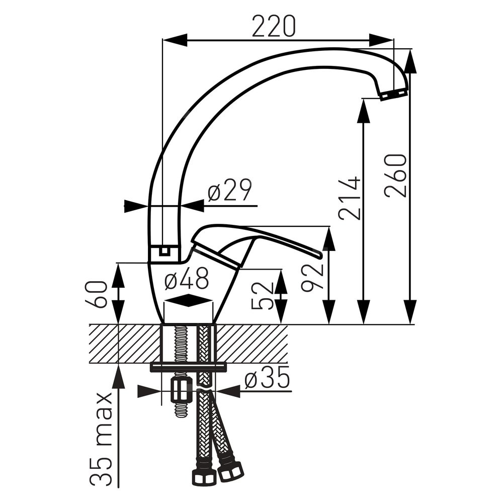 Bateria zlewozmywakowa o charakterystycznym owalnym kształcie. Obły kształt korpusu i wylewki ułatwi utrzymanie baterii w czystości, krople wody nie będą osiadać, pozostawiając przy tym mniej osadu wapiennego. Obrotowa wylewka baterii zwiększa jej funkcjonalność.