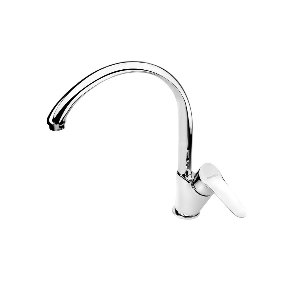 Bateria zlewozmywakowa stojąca KFA Armatura LEONIT, obrot. wylewka, uchwyt boczny - skośny, kolor chrom, mosiądz
