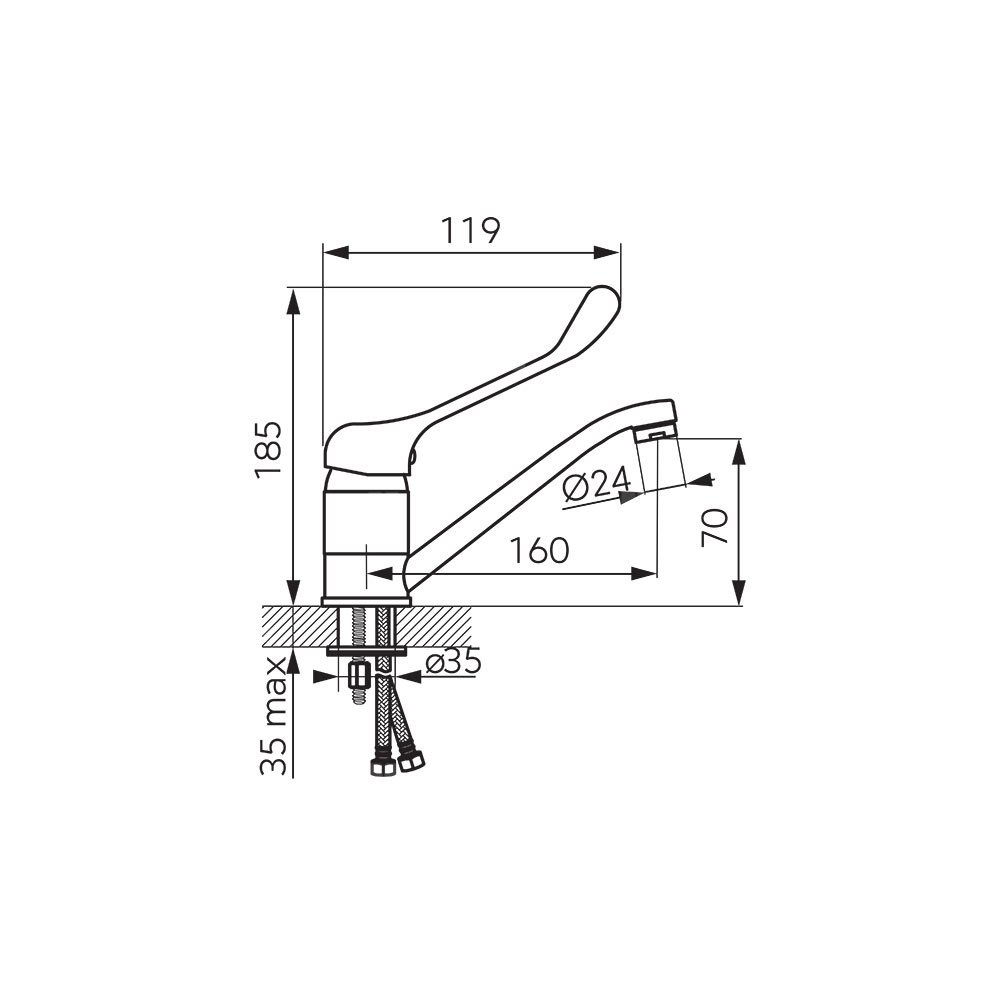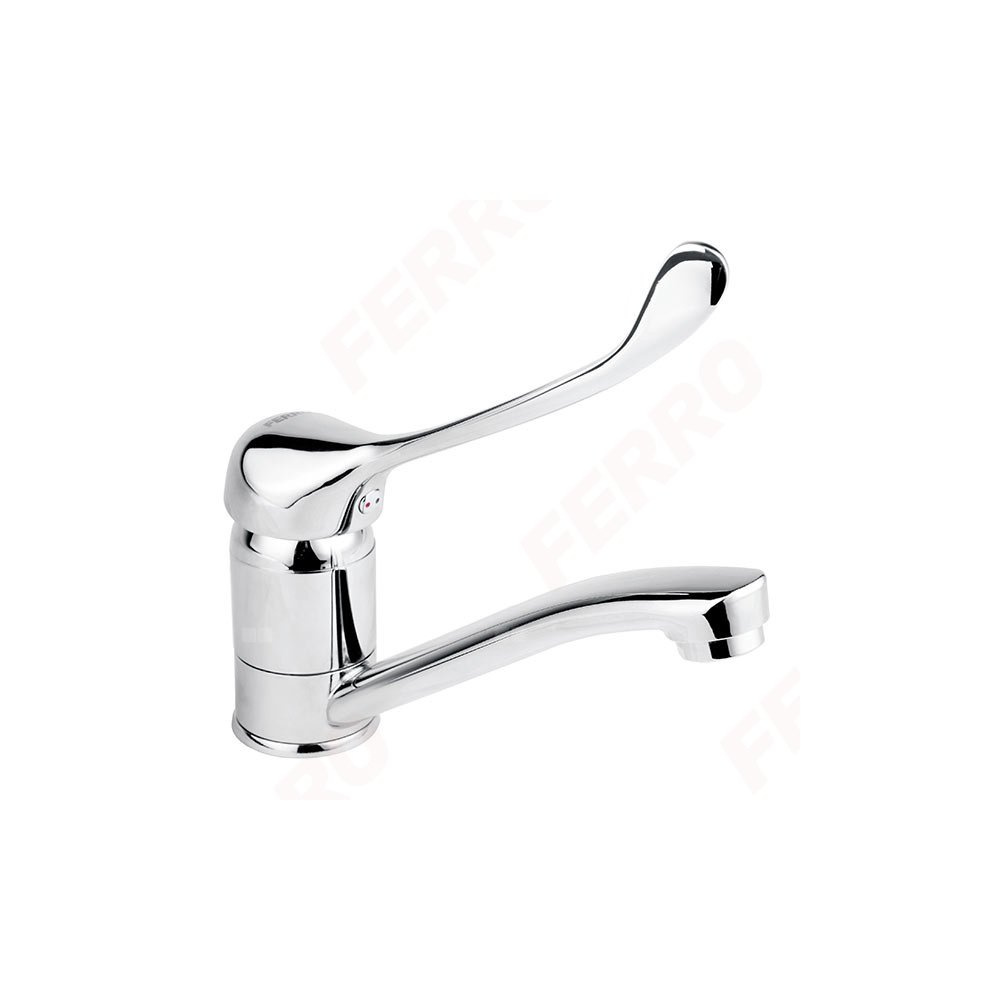 Bateria umywalkowa medyczna o charakterystycznym owalnym kształcie. Obły kształt korpusu i wylewki ułatwi utrzymanie baterii w czystości, krople wody nie będą osiadać, pozostawiając przy tym mniej osadu wapiennego. Obrotowa wylewka baterii zwiększa jej funkcjonalność. Produkt posiada uchwyt medyczny z przedłużoną dźwignią, który ułatwia regulacje strumienia oraz temperatury wody.