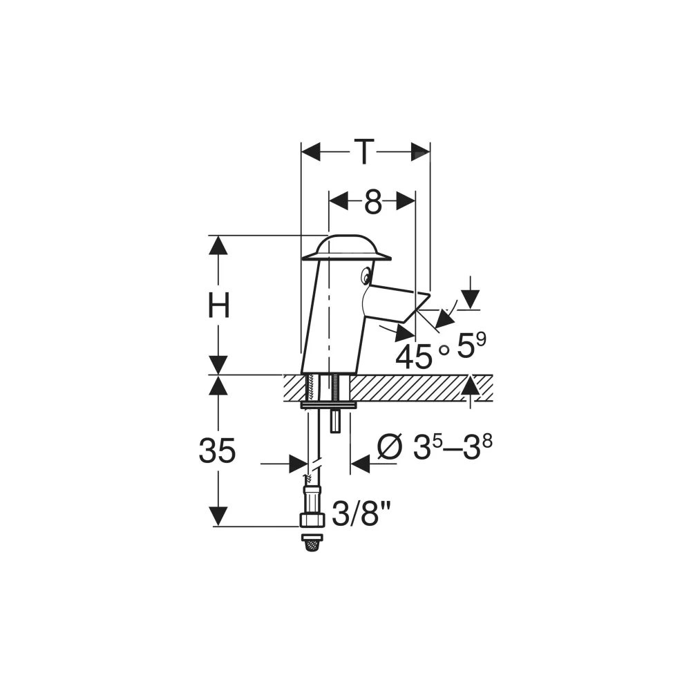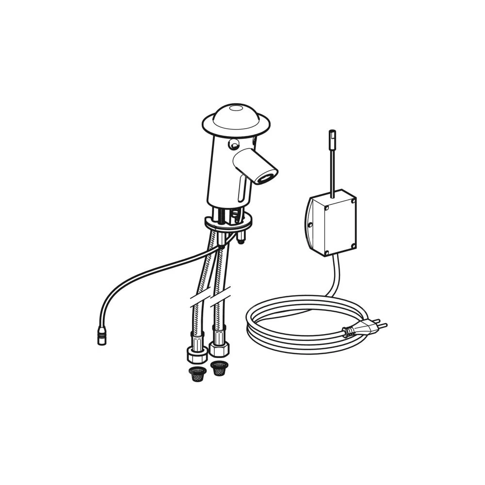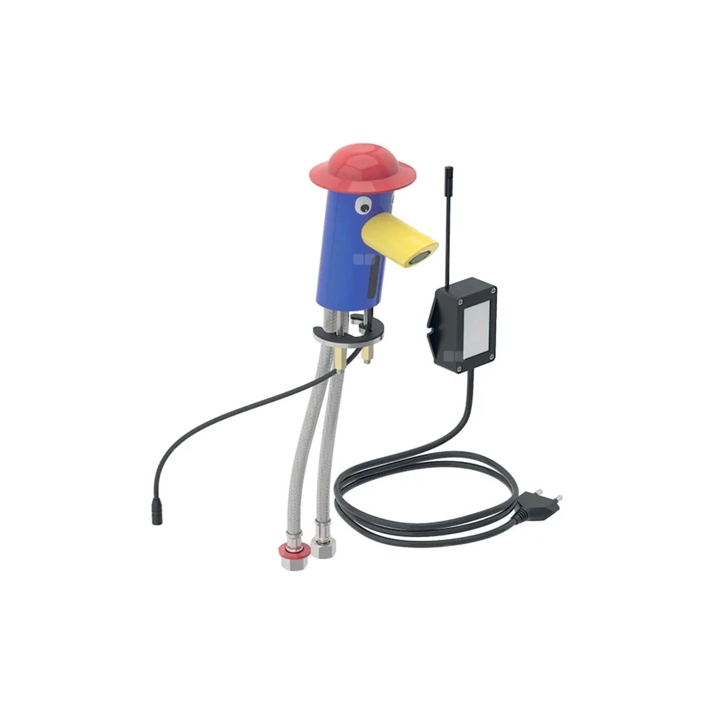 Bateria umywalkowa Geberit Bambini, zasilanie sieciowe, wielokolorowa: Mieszacz=Z mieszaczem, Osłona: czerwona, Korpus: niebieski ultramaryna, Wylot: żółty drogowy