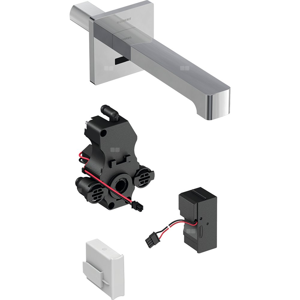Bateria umywalkowa Geberit Brenta, ścienna, zasilanie sieciowe, do podtynkowej skrzynki funkcyjnej, bez mieszacza, L22, chrom