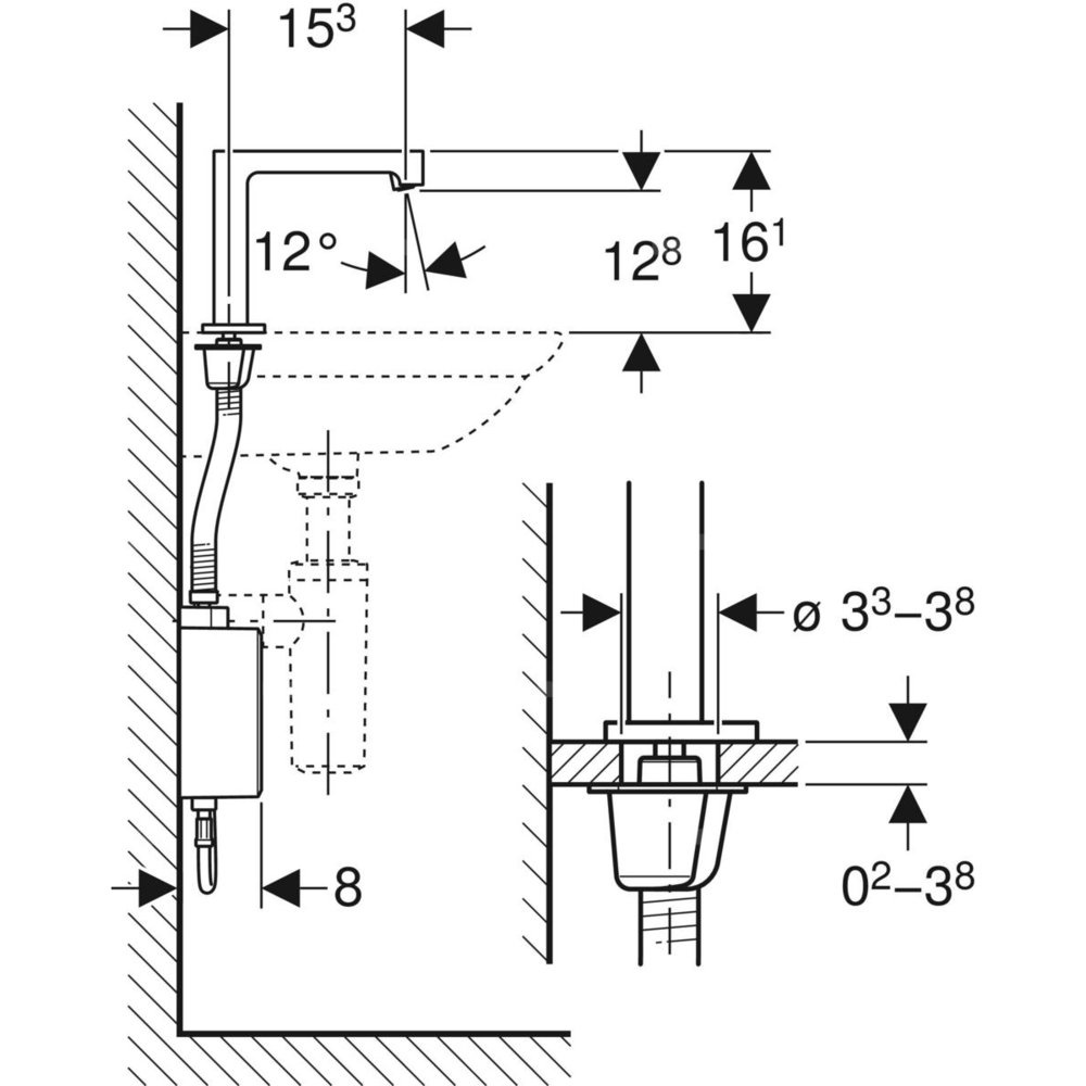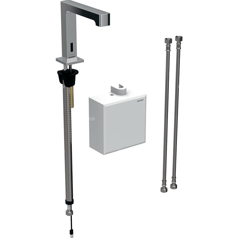 Bateria umywalkowa Geberit Brenta, stojąca, zasilanie bateryjne, z natynkową skrzynką funkcyjną, z mieszaczem termostatycznym, chrom