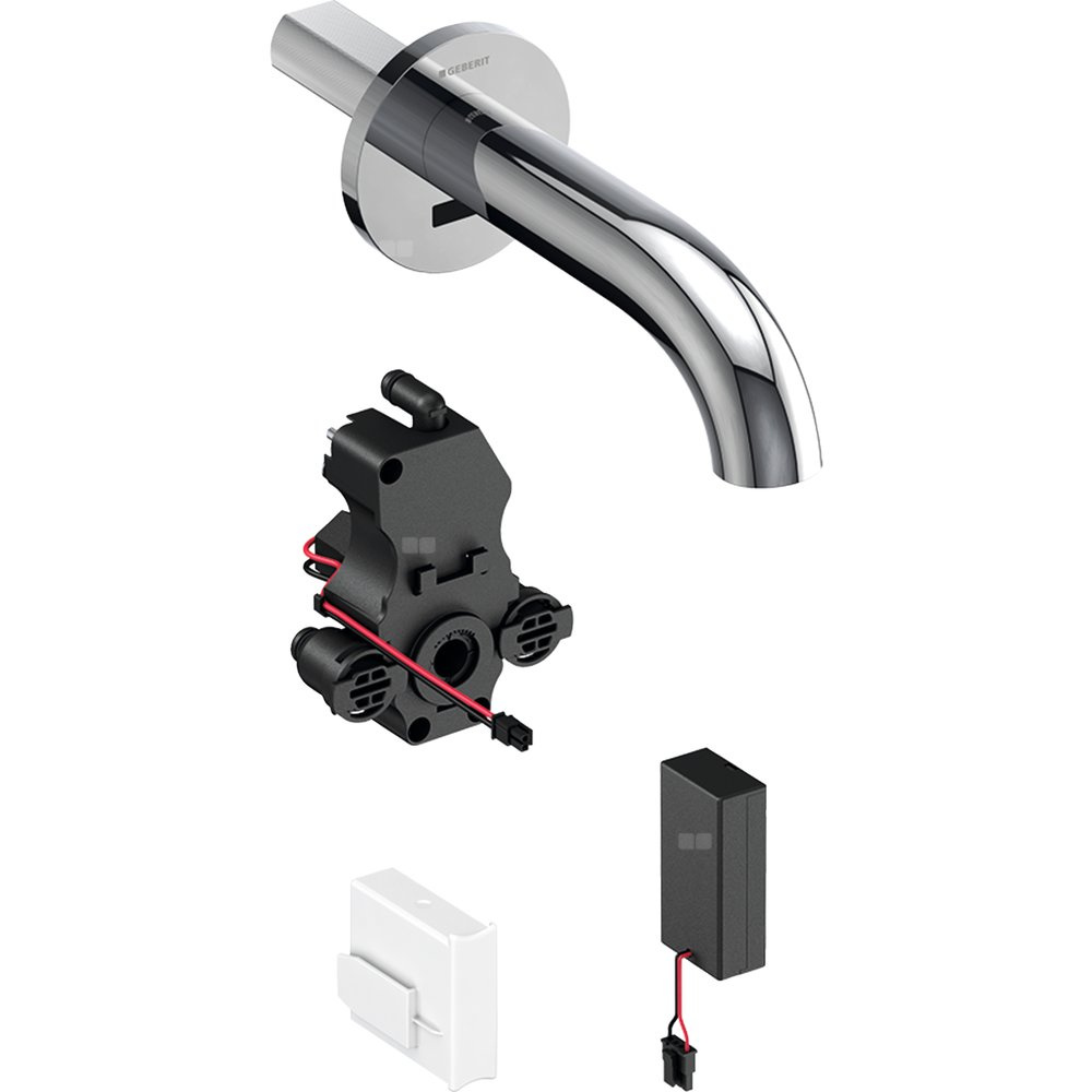 Bateria umywalkowa Geberit Piave, ścienna, zasilanie bateryjne, do podtynkowej skrzynki funkcyjnej, bez mieszacza, L17, chrom