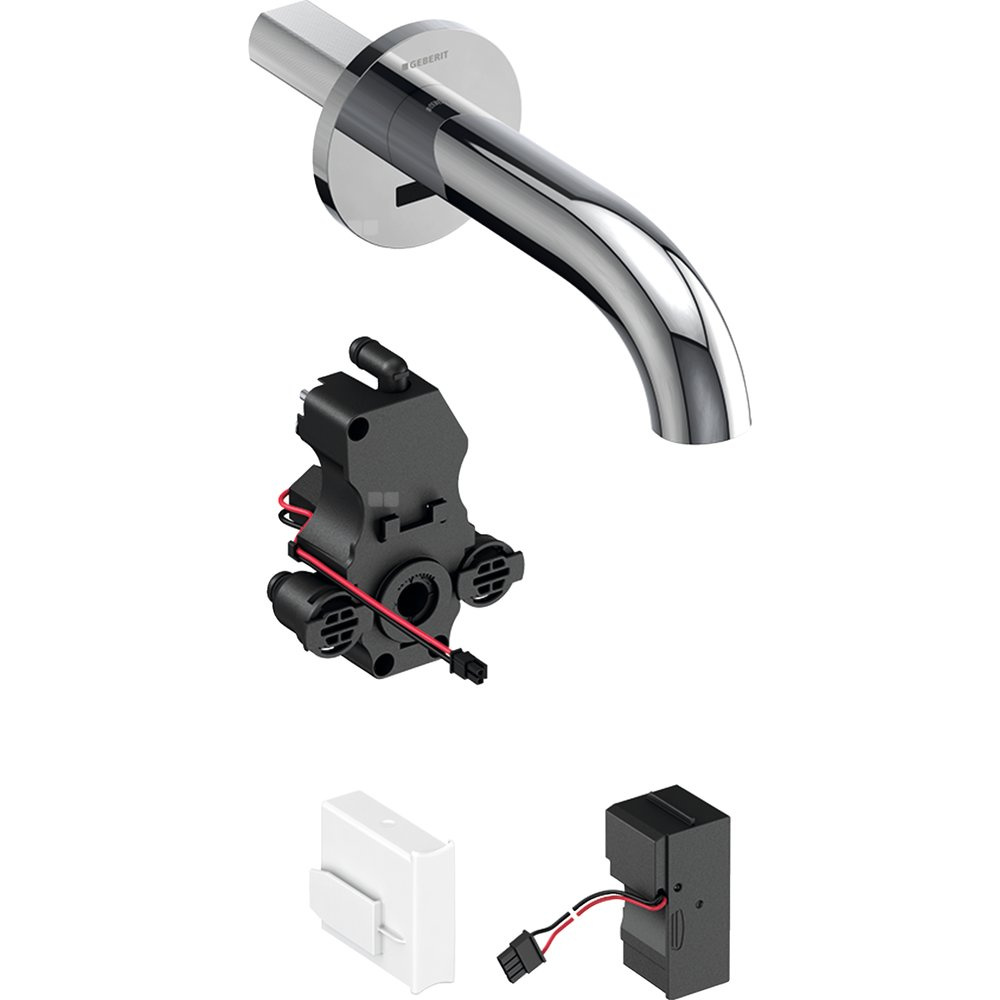Bateria umywalkowa Geberit Piave, ścienna, zasilanie sieciowe, do podtynkowej skrzynki funkcyjnej, z mieszaczem, L22, chrom