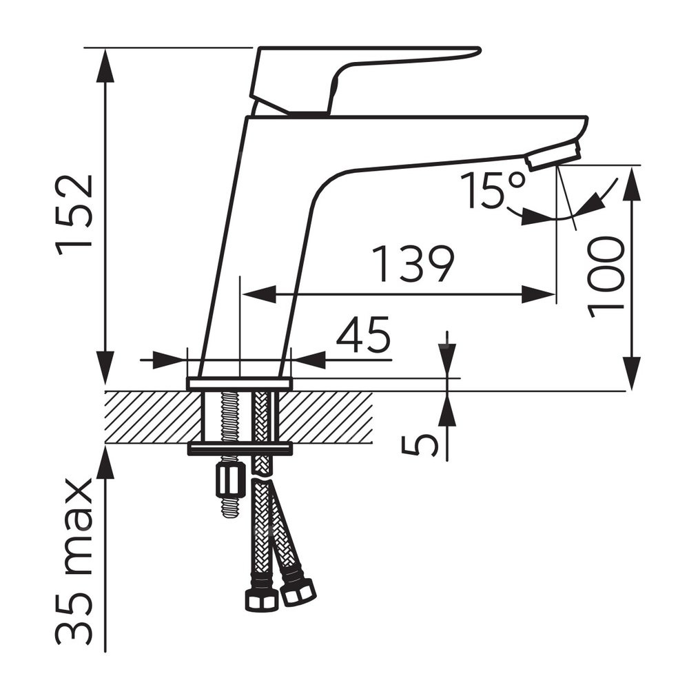 Oszczędnościowa, bateria umywalkowa w nowoczesnym, prostokątnym dizajnie. Aerator z ogranicznikiem przepływu i funkcją napowietrzania redukuje zużycie wody przy jednoczesnym zachowaniu komfortu użytkowania. System Easy Clean ułatwi usuwanie osadu wapiennego z sitka aeratora.