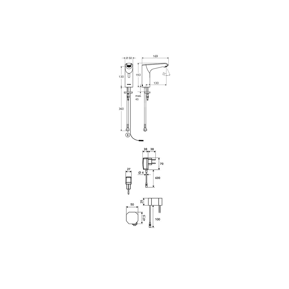 Sterowany czujnikiem podczerwieni. Zasilanie sieciowe (zasilacz wtyczkowy). Przeznaczony do połączenia w sieć z systemem zarządzania wodą SCHELL SWS. Parametryzowana przez SCHELL Single Control SSC