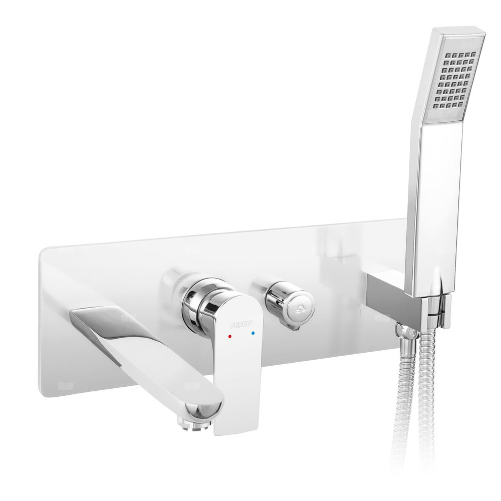 Bateria wannowa podtynkowa w delikatnym prostokątnym designie. W komplecie znajdziemy pasującą stylistycznie rączkę w cylindrycznym kształcie wraz z trwałym wężem natryskowym. Bateria posiada ceramiczny, ergonomiczny przełącznik wylewka/natrysk, który zapewnia łatwość w obsłudze.