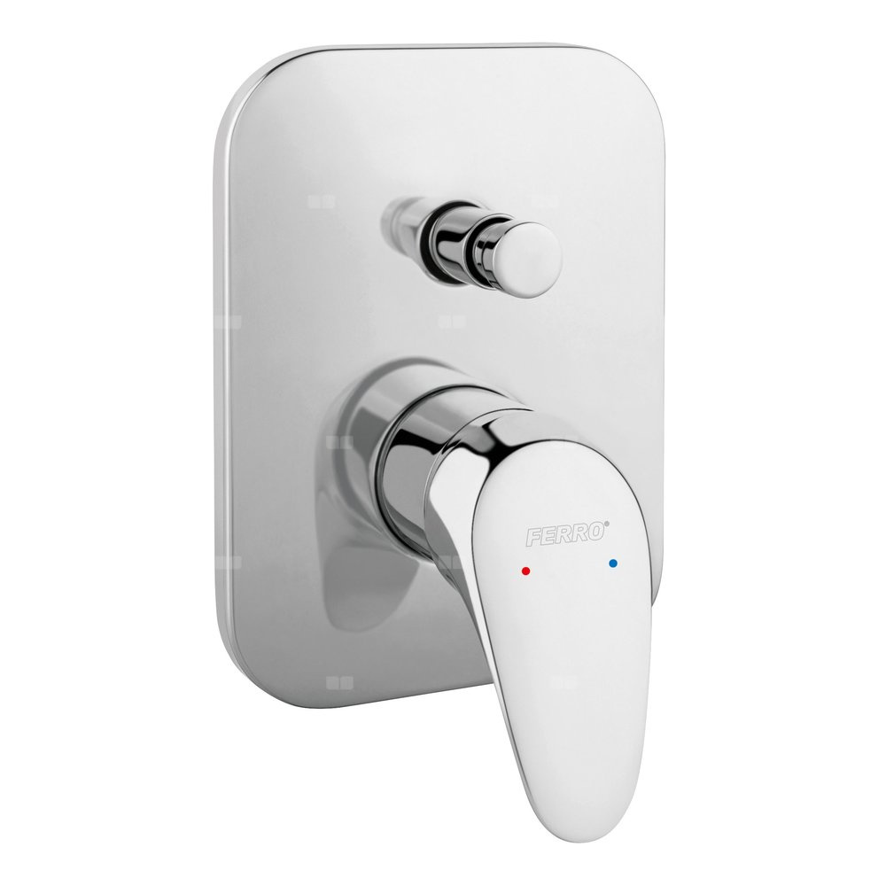 Bateria natryskowa z uchwytem o delikatnej, owalnej formie z prostokątną rozetą. Umożliwia obsługę dwóch różnych odbiorników wody (np. deszczownicy, rączki natryskowej). Co daje nam możliwość swobodnej konfiguracji całego zestawu.