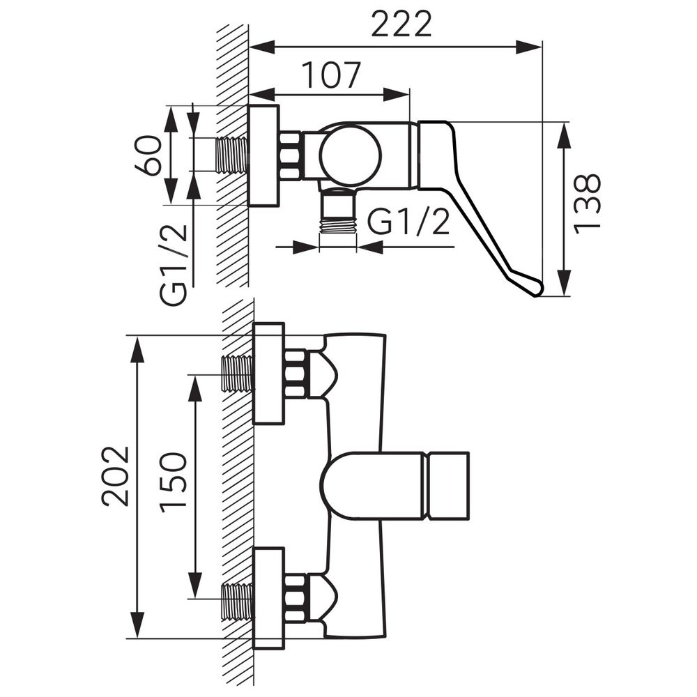 Bateria natryskowa medyczna o charakterystycznym owalnym kształcie. Obły kształt korpusu ułatwi utrzymanie baterii w czystości, krople wody nie będą osiadać, pozostawiając przy tym mniej osadu wapiennego. Uniwersalne przyłącze 1/2" pozwala na wybranie dowolnego zestawu natryskowego.