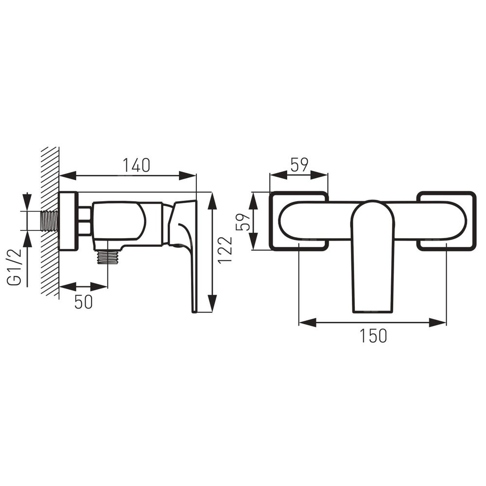 Bateria natryskowa o ciekawym kształcie z prostokątnym uchwytem w nietypowym dwu-kolorowym wykończeniu chromu z czernią. Idealnie pasuje do nowoczesnych wnętrz. Uniwersalne przyłącze 1/2" umożliwia montaż dowolnego zestawu natryskowego.