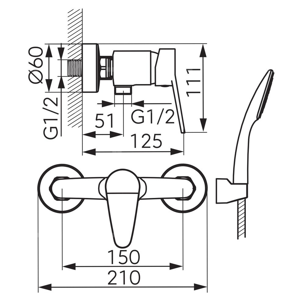 - Długość węża natryskowego: 1500 mm