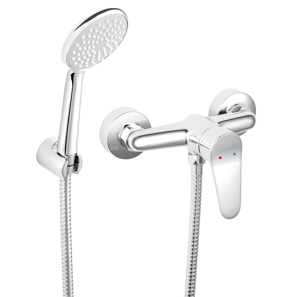 Bateria natryskowa w minimalistycznym stylu z zestawem natryskowym w komplecie. Obły kształt baterii ułatwia utrzymanie jej w czystości.