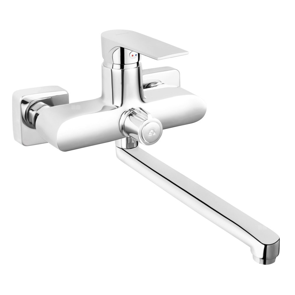 Bateria umywalkowa o ciekawym kształcie z prostokątnym uchwytem. Idealnie pasuje do nowoczesnych wnętrz. Obrotowa wylewka baterii dodatkowo zwiększa jej funkcjonalność. Bateria posiada trwały ceramiczny przełącznik funkcji oraz uniwersalne przyłącze 1/2" które pozwala na wybranie dowolnego zestawu natryskowego.
