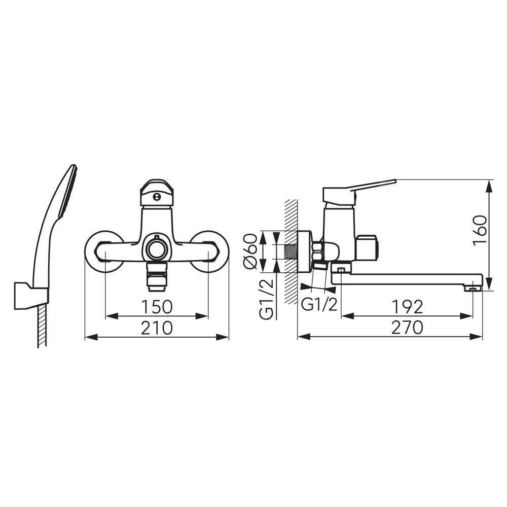 Bateria umywalkowo-wannowa z funkcjonalną, ruchomą wylewką, w zestawie z rączką natryskową z funkcją strumienia typu deszcz, uchwytem oraz wężem natryskowym. Ceramiczny, ergonomiczny przełącznik wylewka/natrysk zapewnia łatwość w obsłudze.