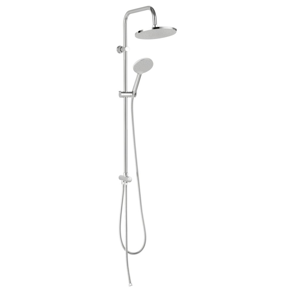Kalsyczny, okrągły zestaw deszczownica z rączką natryskową, wyposażony w innowacyjny system automatycznego usuwania kamienia wapiennego.