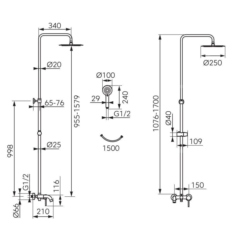 Zestaw natryskowy FIESTA to produkt, który łączy baterię wannową, kolumnę natryskową i natrysk przesuwny. Niezwykle eleganckie rozwiązanie dla ceniących sobie znakomity wygląd oraz dopracowane detale we wnętrzu. Płaska, metalowa deszczownia SLIM o średnicy 25 cm, 3-funkcyjna rączka natrysku w kolorze chromu i dopasowany do całości wąż o długości 150 cm to główne walory przemawiające za wyborem właśnie tego produktu do łazienki. Zestaw FIESTA posiada regulowaną wysokość deszczowni, aż do 206 cm od dna wan
