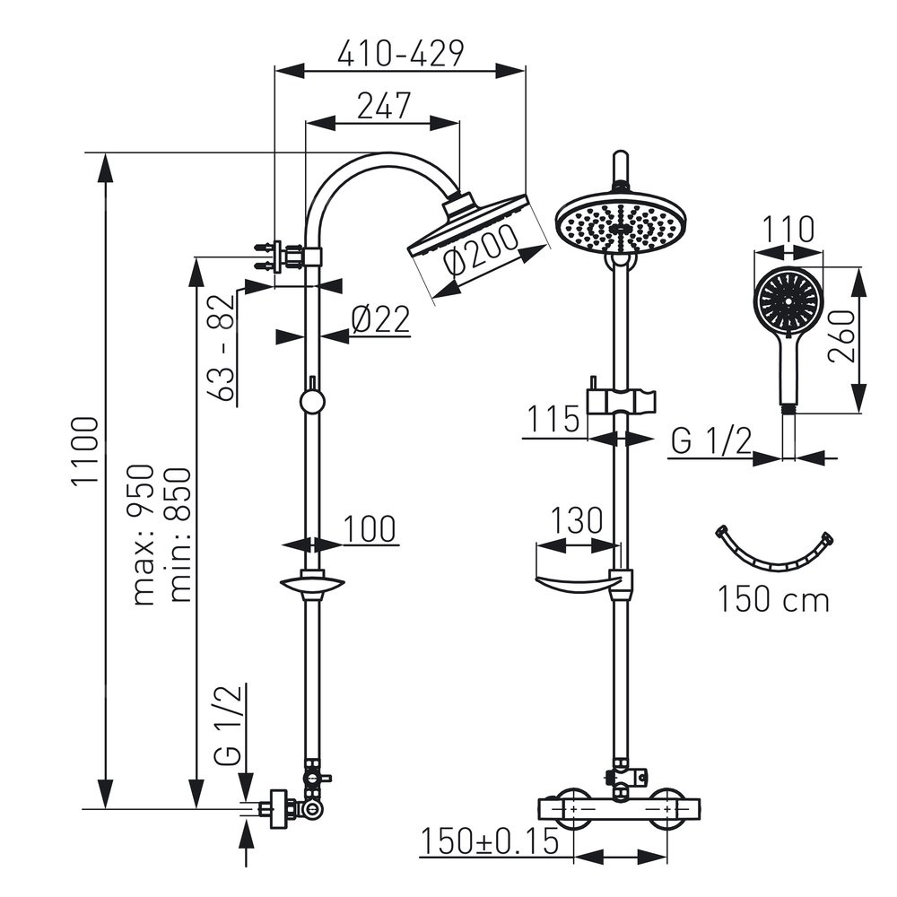Zestaw składający się z solidnej, okrągłej deszczownicy 20 cm, 3-funkcyjnej rączki natryskowej z możliwością wyboru typu strumienia oraz klasycznej baterii termostatycznej. Zestaw posiada praktyczną mydelniczka w komplecie. System Easy Clean ułatwi usuwanie osadu wapiennego z rączki i deszczowni.