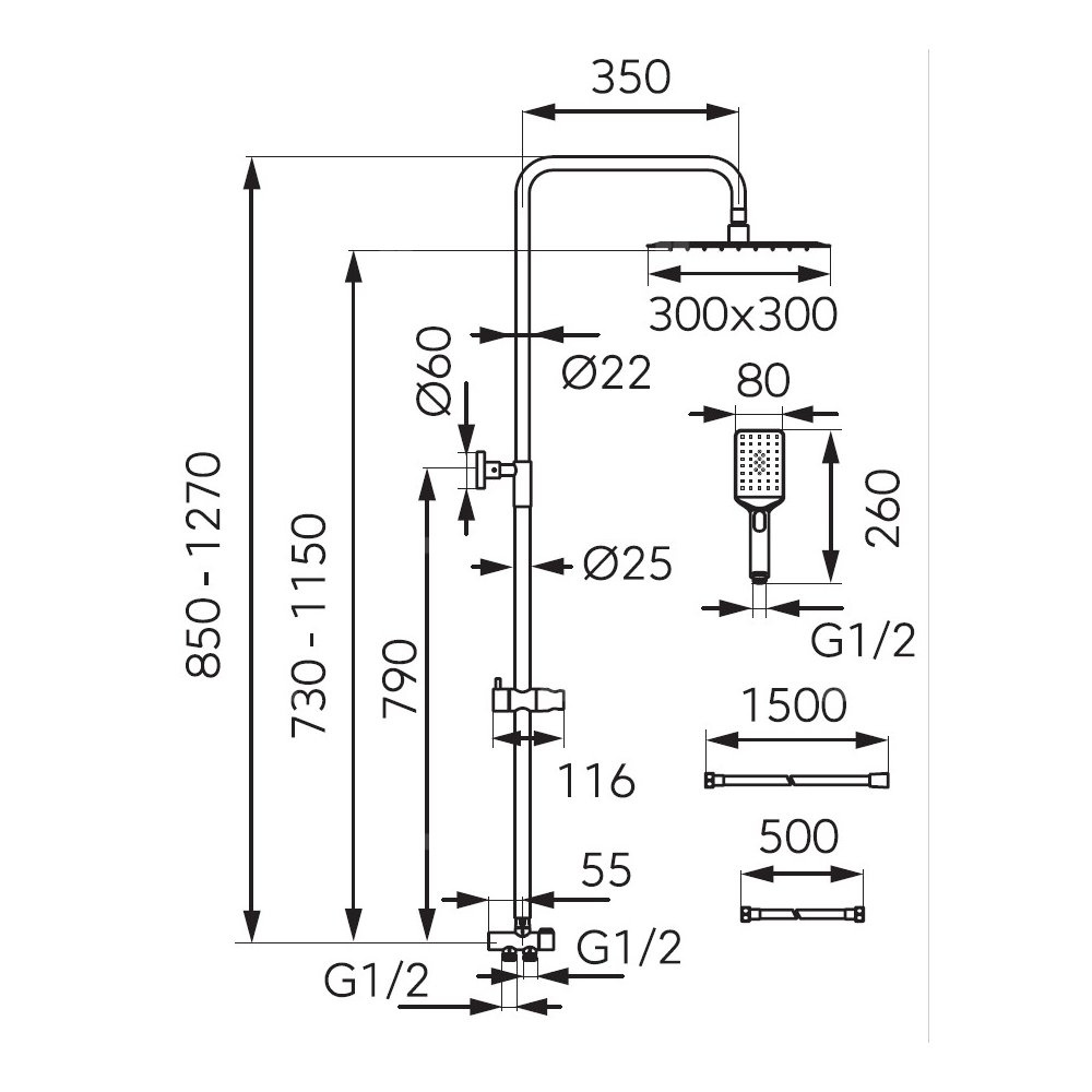Zestaw natryskowy składający się z nowoczesnej, kwadratowej deszczownicy typu slim 30 x 30 cm, 3-funkcyjnej rączki natryskowej z możliwością wyboru typu strumienia. System Easy Clean ułatwi usuwanie osadu wapiennego z rączki i deszczowni. Estetyczny i ergonomiczny przełącznik funkcji natrysku, który zintegrowany jest z dolnym mocowaniem. Produkt posi