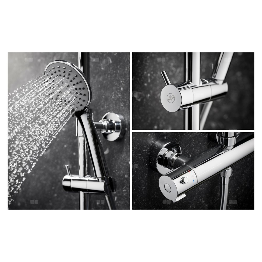 Deszczownia moza z baterią termostatyczną natryskową ścienną chrom