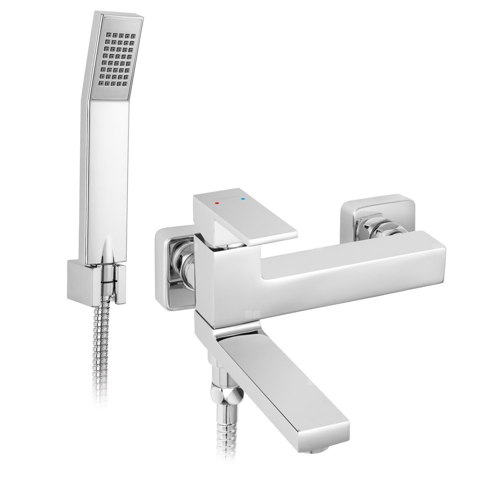 Charakterystyczna, kwadratowa bryła baterii sprawia, że jej dizajn doskonalone pasuje do nowoczesnego wnętrza. Bateria wyposażona jest w ruchomą wylewkę, która pełni jednocześnie funkcje przełącznika. Dzięki takiemu rozwiązaniu zyskujemy oszczędność miejsca co umożliwia nam zastosowanie tego produktu również w małych kabinach natryskowych. W komplecie znajdziemy prostokątną, modną 1-funkcyjną rączkę natryskową, trwały wąż prysznicowy w oplocie z metalu oraz uchwyt.