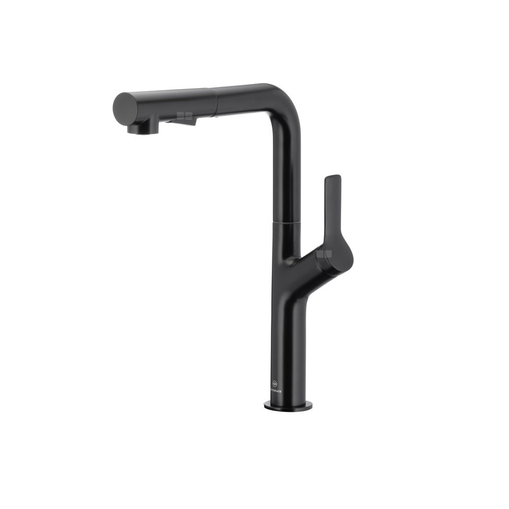 Bateria zlewozmywakowa stojąca KFA Armatura DUERO DESIGN, kolor czarny, wyciągana wylewka i obrotowa wylewka 2 funkcyjna, obrotowy górny, wys. 320 mm