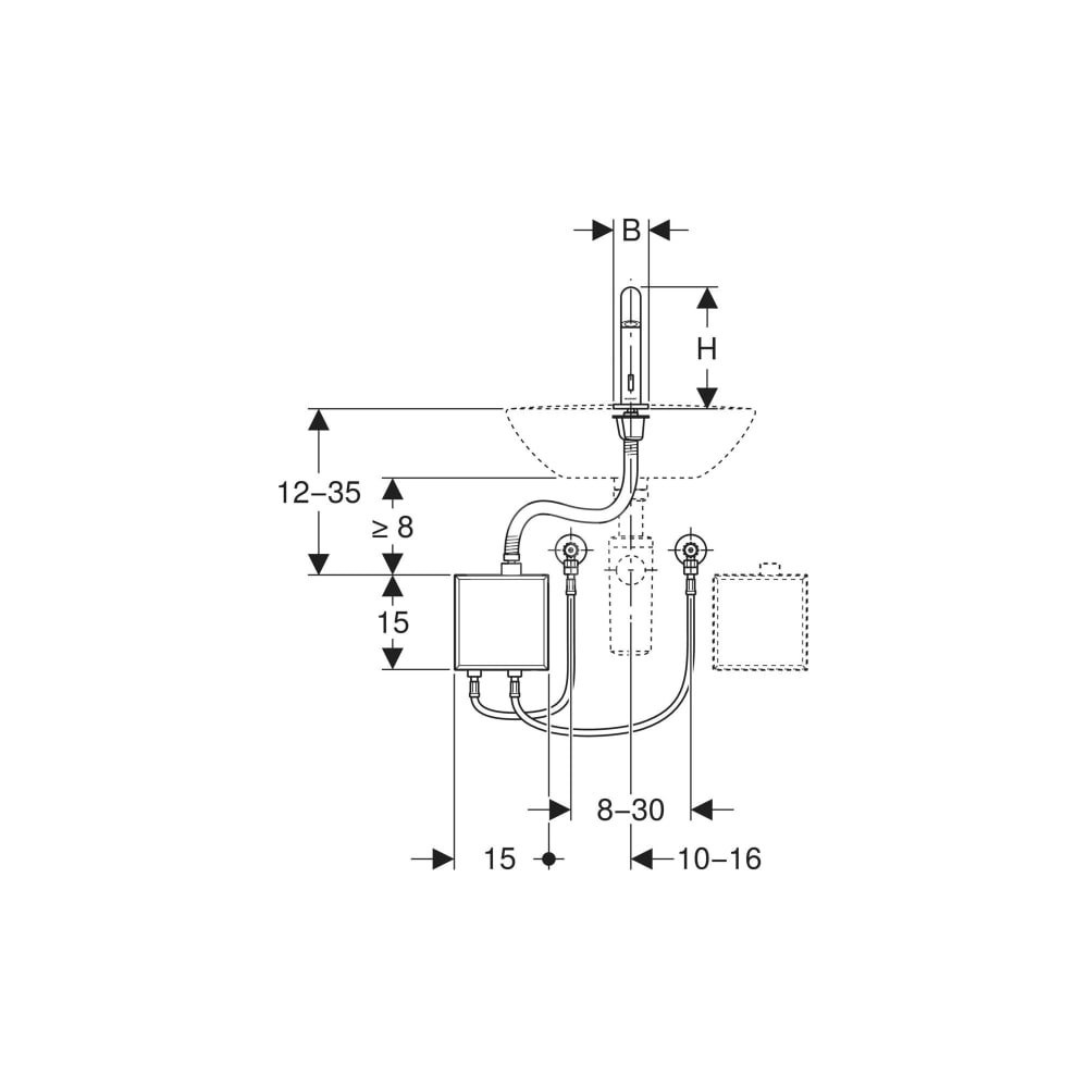 - Do niewymagającego dużej ilości miejsca montażu pod umywalkami