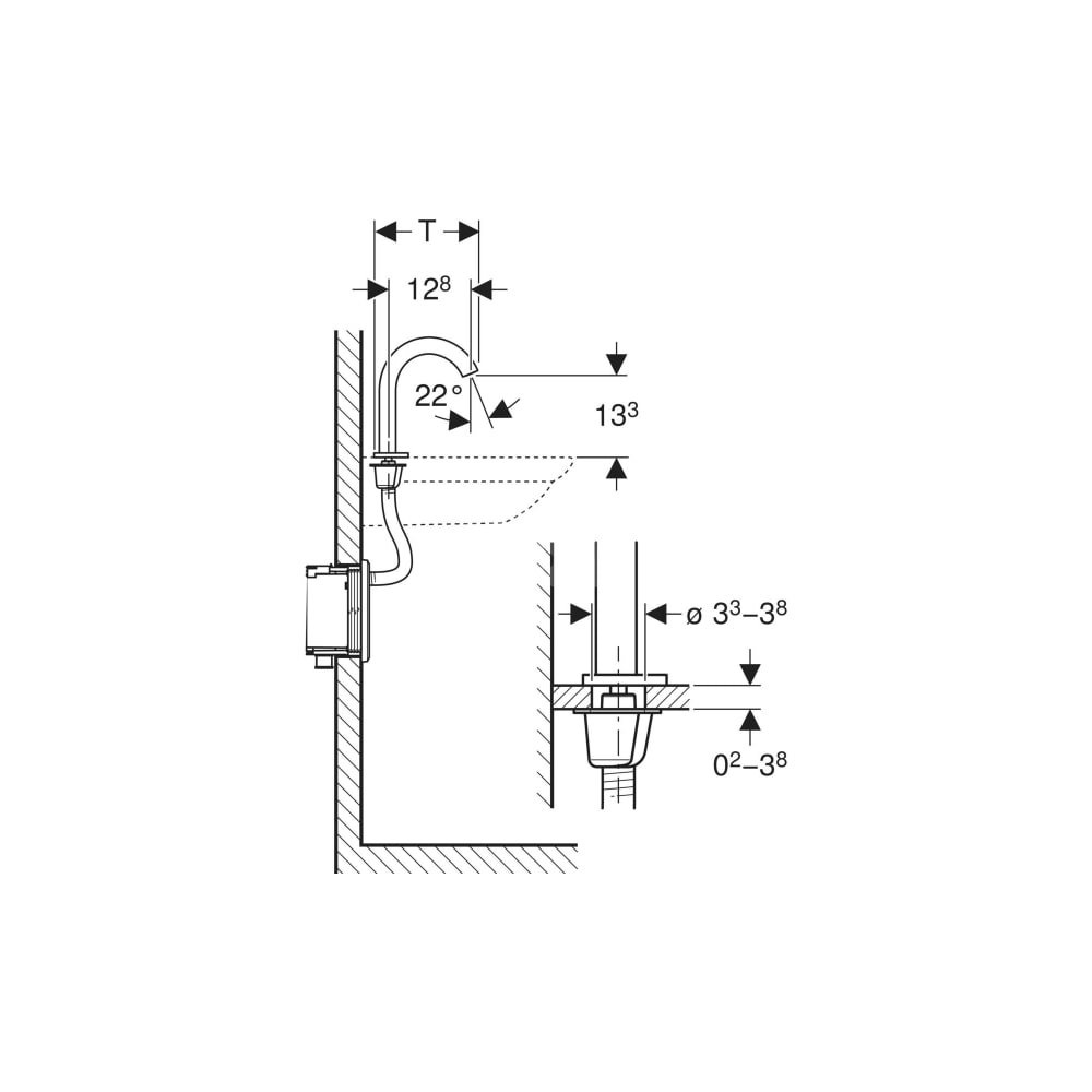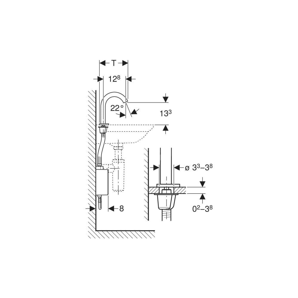 - Do niewymagającego dużej ilości miejsca montażu pod umywalkami z szafką bez otworu na syfon