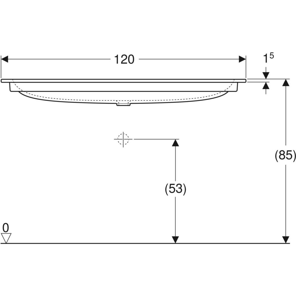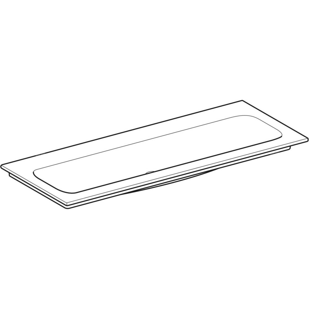 Umywalka GEBERIT iCon 2-stanowiskowa prostokątna, biała, 1200mm, bez otworu na baterię, nakładany od góry, bez odpływu przelewowego, półka od ściany