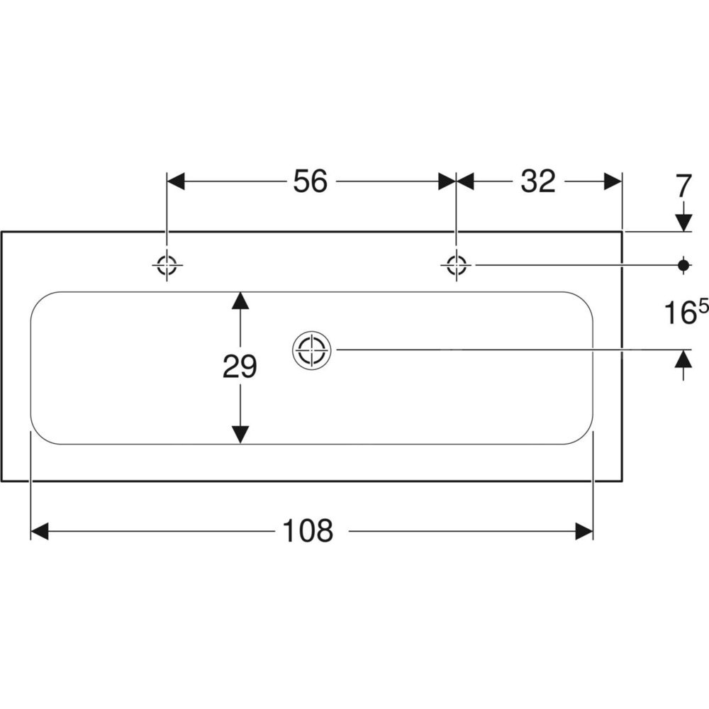 Umywalka GEBERIT iCon 2-stanowiskowa prostokątna, biała, 1200mm, otwór na baterię na środku (x2), nakładany od góry, bez odpływu przelewowego, półka od ściany