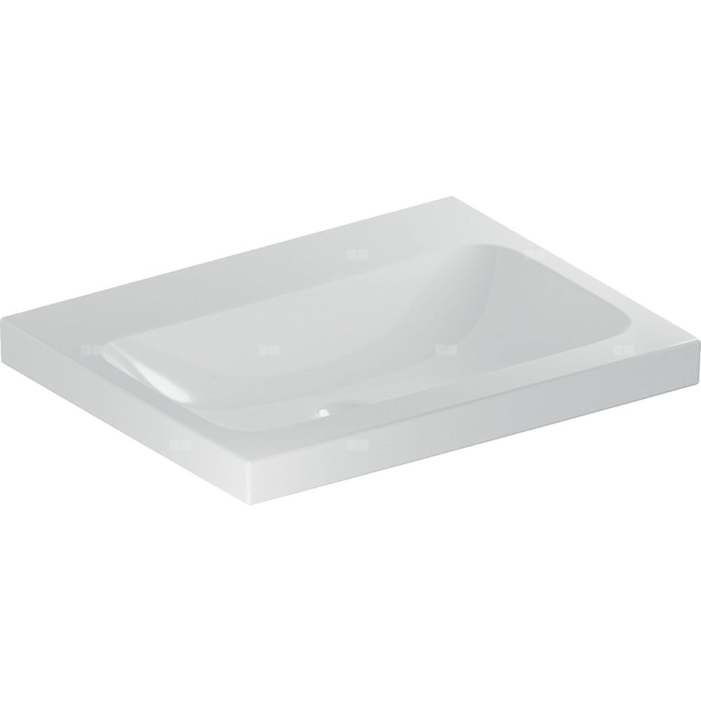 Umywalka GEBERIT iCon Light prostokątna, biała, 600mm, bez otworu na baterię, stawiana na blat, bez odpływu przelewowego, półka od ściany